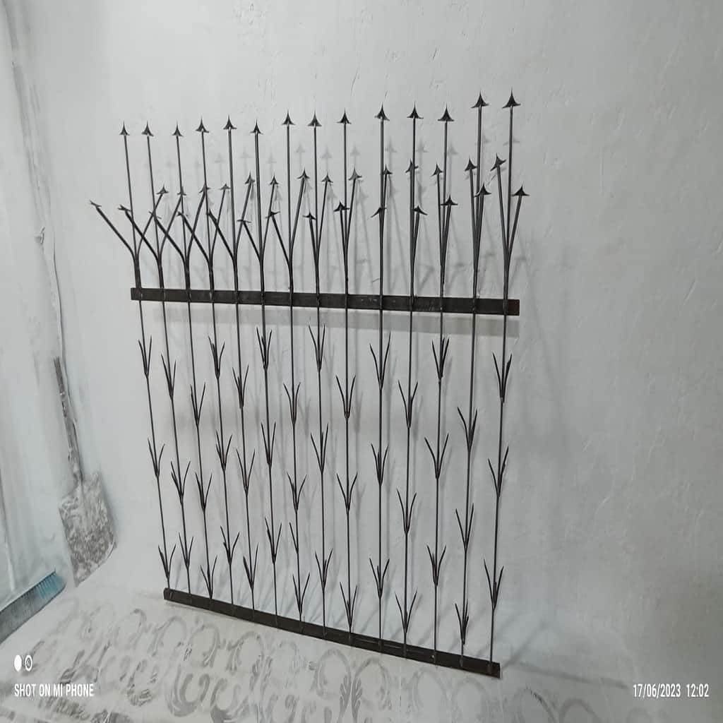 حفاظ شمشادی با طراحی منحصر به فرد و استفاده از میلگردهای 10 میلی متری, به یکی از مقاوم ترین و امن ترین انواع حفاظ های شاخ گوزنی تبدیل شده است. این مدل حفاظ برای نصب روی دیوارهای بلند ویلاها, آپارتمان ها و محیط های صنعتی طراحی شده است و به خاطر تراکم بالا و استحکام میلگردها, مقاوم در برابر ضربه, فشار و تلاش برای عبور می باشد. حفاظ شمشادی در ارتفاع های مختلف 80, 100 و 120 سانتی متر تولید می شود و با تراکم 42 گل تزئینی, نه تنها امنیت بالایی ایجاد می کند بلکه ظاهر زیبایی به نمای ساختمان می بخشد. این حفاظ با رنگ آمیزی الکترواستاتیک کوره ای مقاوم در برابر زنگ زدگی و آسیب های محیطی ساخته می شود و در رنگ های سفید, مشکی, طلایی و قهوه ای سوخته قابل سفارش است. ارتفاع شاخه ها 2 متر است و وزن تقریبی هر شاخه به حدود 29 کیلوگرم می رسد. نصب این حفاظ بر روی دیوارهای سنگی, بلوک سیمانی, اسکلت فلزی و هر نوع بستر دیگری امکان پذیر است و این محصول در محیط های مختلف مانند پارک ها, اقامتگاه ها, حیاط های ویلا و ساختمان های مسکونی کاربرد فراوانی دارد.