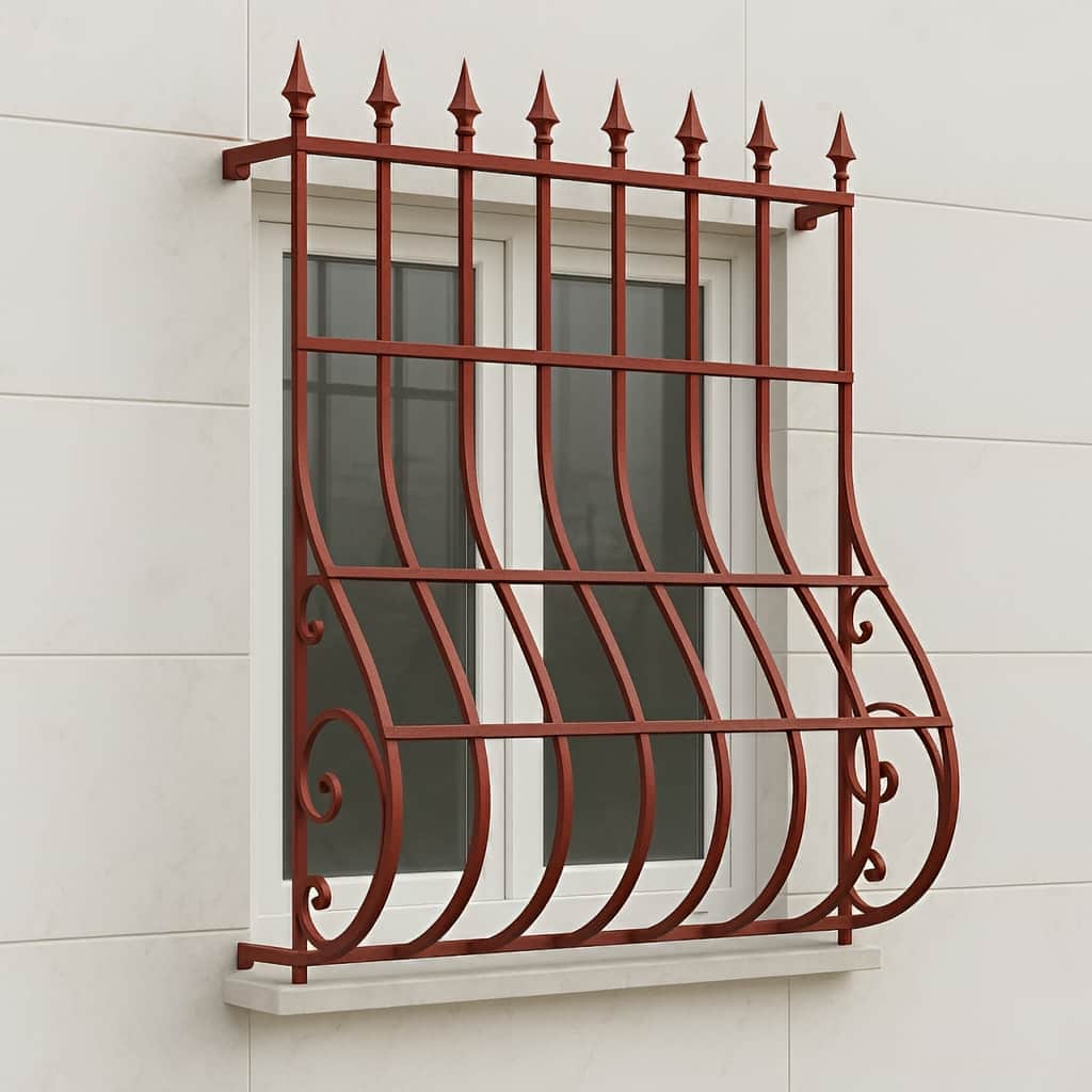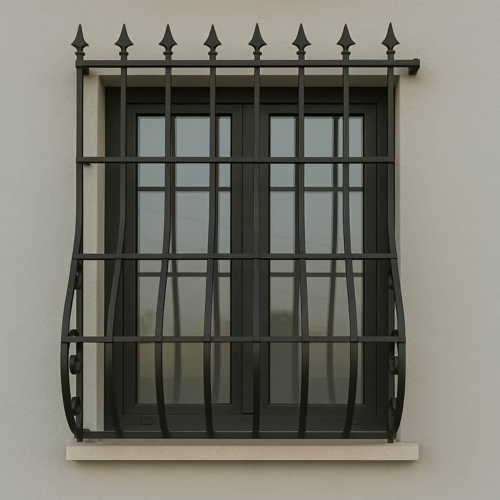 حفاظ پنجره مدل نیزه ای قوس دار, یکی از محبوب ترین و جذاب ترین مدل های حفاظ پنجره است که با ترکیب خطوط منحنی و المان های امنیتی نظیر سرنیزه های فلزی در بالای حفاظ, هم از نظر زیبایی شناسی و هم از نظر ایمنی, به عنوان انتخابی اطمینان بخش برای ساختمان های مسکونی و ویلایی شناخته می شود. این مدل حفاظ به ویژه برای ساختمان هایی با نماهای کلاسیک و رومی یا ویلاهای دوبلکس بسیار مناسب است و نمایی لوکس و شیک به ساختمان شما می بخشد.