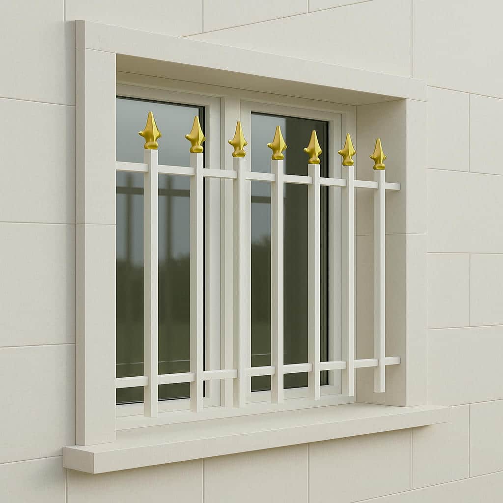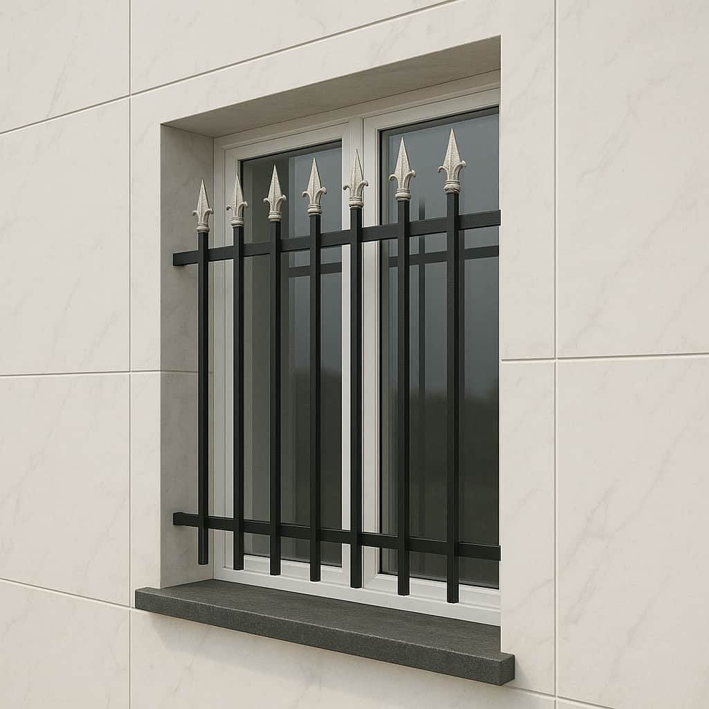 حفاظ پنجره مدل نیزه دار ساده با طراحی خطی عمودی و سرنیزه های بازدارنده یکی از مقاوم ترین و پرکاربردترین حفاظ های پنجره در پروژه های مختلف است. این مدل با ایجاد امنیت بالا برای طبقات همکف و پایین, مناسب ساختمان هایی است که نیاز به امنیت بالا, سادگی و عملکرد مؤثر دارند. طراحی مینیمالیستی آن باعث می شود که همزمان با تأمین امنیت, به نمای ساختمان نیز جلوه ای ساده و شیک بدهد.