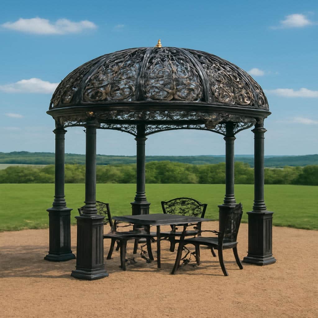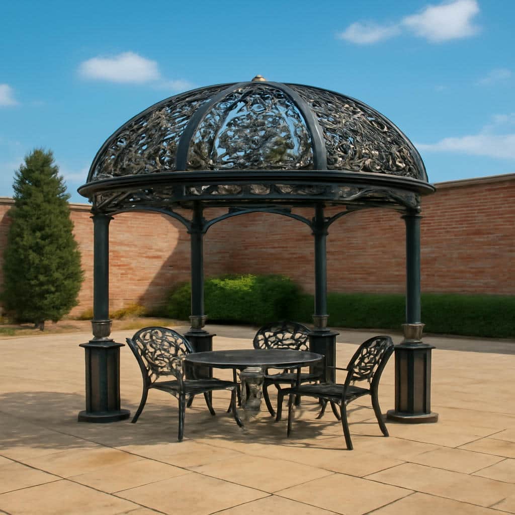 آلاچیق الیزه دارای طراحی گنبدی است که ترکیب زیبایی از خم ها و نقوش کلاسیک را در بر دارد. این آلاچیق به طور ویژه برای کسانی که به دنبال زیبایی و هنر در فضاهای باز خود هستند, طراحی شده است. تاج گنبدی آن این امکان را می دهد که لوستر فرفورژه یا چراغ آویز نصب شود و جلوه ای فاخر و منحصر به فرد به فضای شما ببخشد. طراحی دقیق و جزئیات هنری در این آلاچیق باعث می شود که آن را نه تنها به عنوان یک سازه مفید برای سایه بان, بلکه به عنوان یک اثر هنری در فضای باز تجربه کنید.