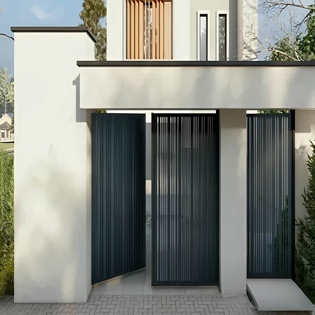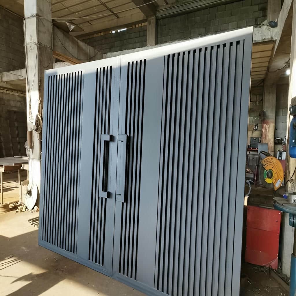 درب فلزی مدرن «پلازا» با طراحی مینیمال و متناسب با سبک های مدرن, گزینه ای ایده آل برای ورودی ویلاها, پارکینگ ها یا ساختمان های اداری است. این درب از پروفیل آهنی ضخیم و ورق فلزی CNC برش خورده ساخته شده که به طور ویژه برای فضاهای مدرن طراحی شده است. وزن آن بسته به ابعاد و ویژگی ها, بین 180 تا 220 کیلوگرم متغیر است. این درب از دو مدل استاندارد دو لنگه (ماشین رو) با عرض های 300, 330 و 350 سانتی متر و ارتفاع 240 سانتی متر و نسخه تک لنگه نفررو با عرض 110 و ارتفاع 230 سانتی متر قابل سفارش است.